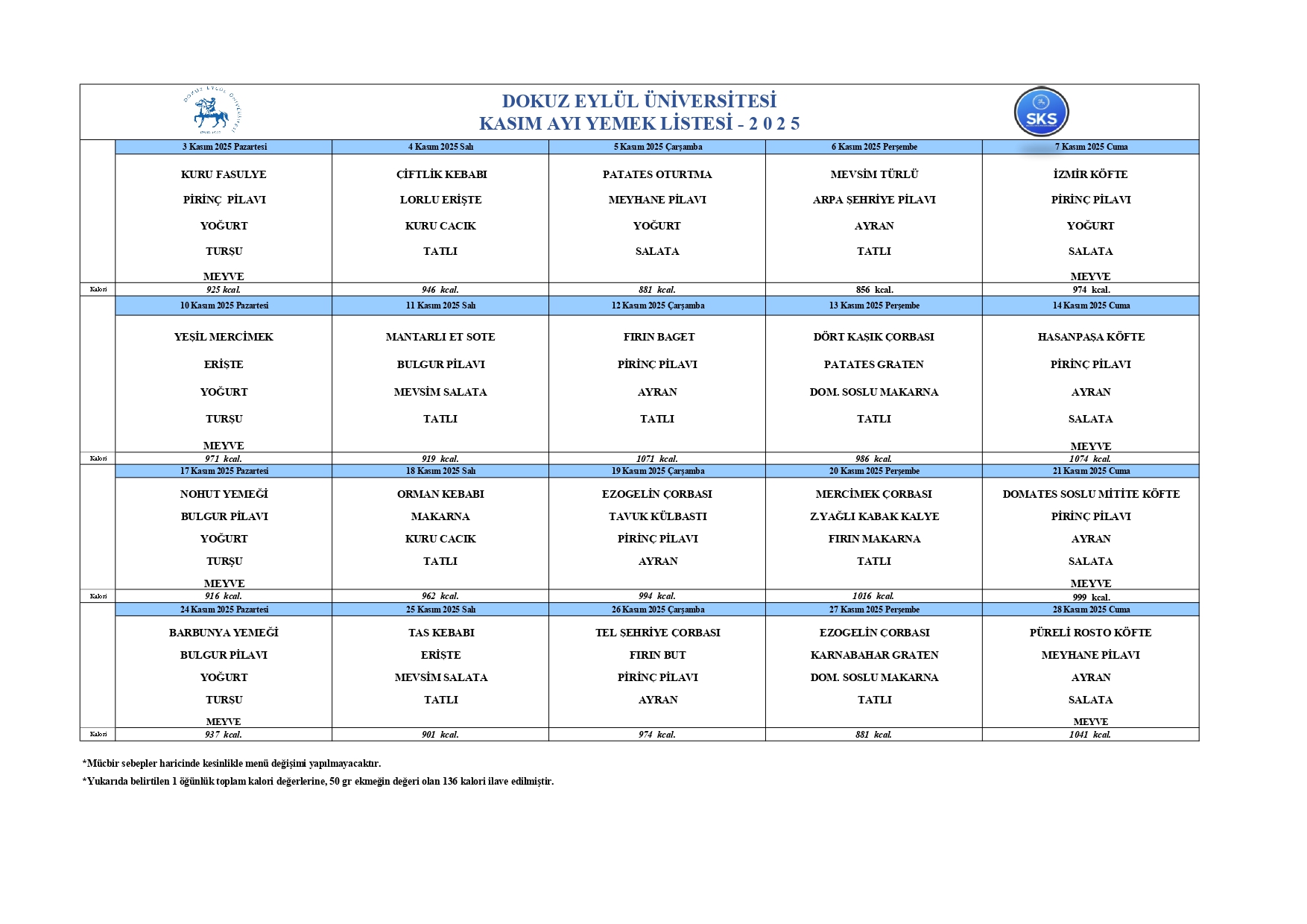 Üniversitemiz Yönetim Kurulu’nun 18.09.2025 tarihli ve 1693 sayılı kararı uyarınca, 22 Eylül 2025 tarihinden itibaren geçerli olmak üzere yemek ücretlerinde güncelleme yapılmıştır.
